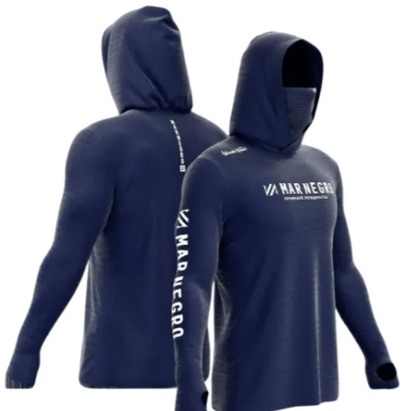 A Mar Negro inovando em seus modelos de camisetas, traz a linha X Protect 360 com capuz e buff integrado. Confeccionada em poliamida de alta qualidade, é super confortável, leve e ultra flexível. A camiseta X Protect 360 foi desenhada com um novo modelo de capuz cruzado com buff integrado que protege o rosto e pescoço em 360 graus, além da proteção das mãos com luva embutida no punho. Projetada especialmente para os pescadores, é uma camiseta indicada para atividades ao ar livre com proteção contra raios solares UV50+.