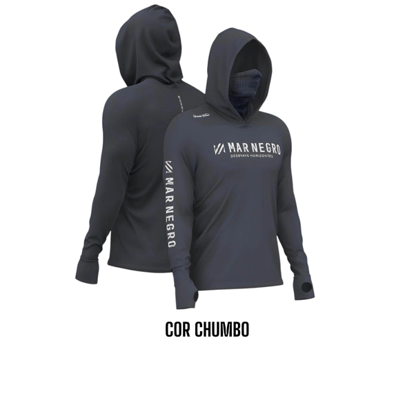 A Mar Negro inovando em seus modelos de camisetas, traz a linha X Protect 360 com capuz e buff integrado. Confeccionada em poliamida de alta qualidade, é super confortável, leve e ultra flexível. A camiseta X Protect 360 foi desenhada com um novo modelo de capuz cruzado com buff integrado que protege o rosto e pescoço em 360 graus, além da proteção das mãos com luva embutida no punho. Projetada especialmente para os pescadores, é uma camiseta indicada para atividades ao ar livre com proteção contra raios solares UV50+.