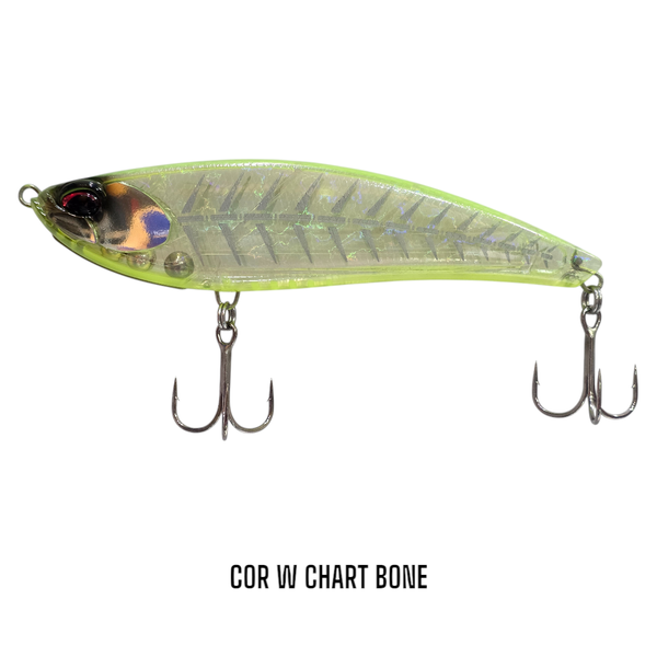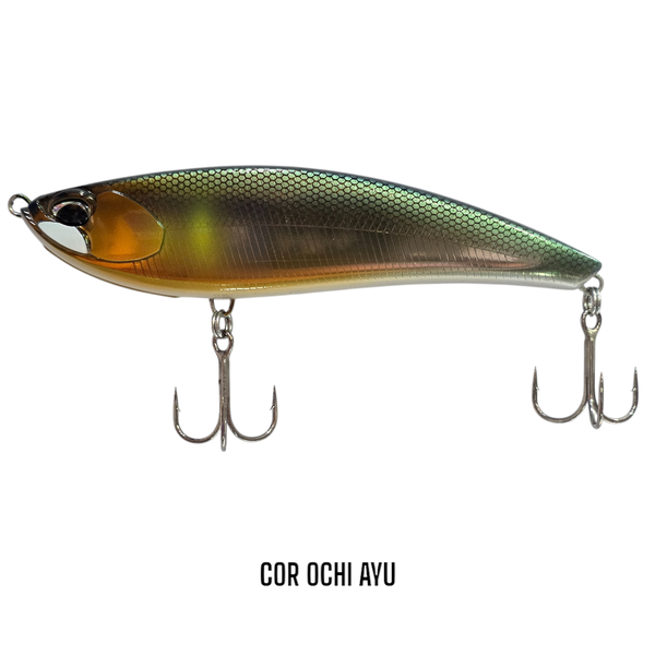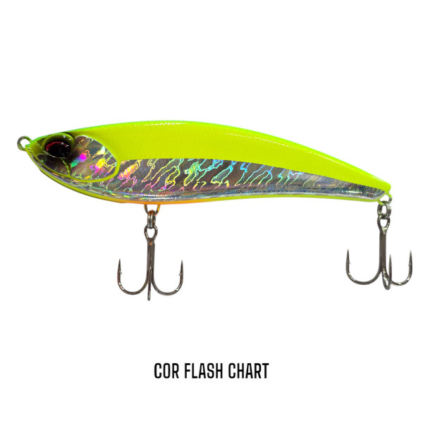 A isca ROUGH TRAIL MAKIFLAT 155F tem um corpo alto e achatado, a água desliza sobre sua cabeça para trás e cria uma ação agitada nas águas rasas. Ele imita um peixe de isca enfraquecido ao qual o robalo, tucunaré, traíras e outros predadores não conseguem resistir. Recomenda-se uma recuperação de velocidade lenta a média. Uma ação de balanço é fácil de fazer, despertando o instinto predatório dos peixes caçadores. Um recolhimento de linha lenta cria uma onda de fuga como uma isca de água superficial. Uma ampla gama de usos é possível, dependendo da situação, incluindo flash oscilante com cursos de haste.