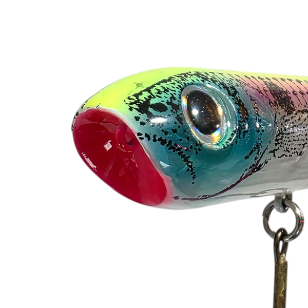 Isca Artificial Chug'n Spook Heddon, sucesso entre os pescadores, com trabalho em superfície e ação zara, o formato de sua boca côncava a transforma em uma isca poper, com rattlin estridente, e uma isca fatal para a captura de grandes peixes. Com trabalho de toques curtos e contínuos de ponta de vara, descreve uma trajetória em "Z" na superfície da água, os movimentos feitos pela sua boca concova produzem bolhas, atraindo predadores com extrema agressividade. Indicada para a captura de predadores como: Aruanã, Bicuda, Black Bass, Cachorra, Dourado, Jacundá, Matrinxã, Pintado, Piranha, Traíra, Trairão, Tucunaré, entre outros predadores.