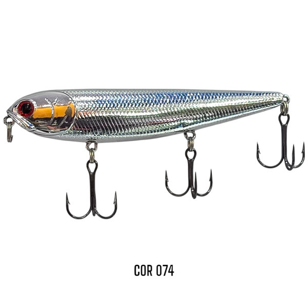 A Sammy 105 da Lucky Craft é um verdadeiro ícone entre as iscas de superfície. Reconhecida mundialmente por sua eficiência e ação refinada, essa zara é a escolha de campeões e pescadores que não abrem mão de qualidade e performance em alto nível. Com nado suave e hipnotizante, ela cria um rastro em zigue-zague irresistível, ideal para provocar ataques explosivos na flor d’água. A Sammy 105 apresenta uma natação walk-the-dog extremamente fácil de executar, mesmo para quem está começando. Sua forma hidrodinâmica aliada a um balanceamento interno preciso permite que a isca deslize lateralmente com fluidez, criando o movimento errático que imita perfeitamente um peixe ferido ou em fuga. Equipada com esferas internas, a isca emite sons atrativos durante o trabalho, aumentando ainda mais sua capacidade de chamar a atenção dos predadores, mesmo em águas com pouca visibilidade. Seu acabamento premium, com pintura realista e olhos 3D, reforça o apelo visual durante o ataque. A Sammy 105 é ideal para trabalhar em superfície espelhada ou com pequenas ondulações, especialmente ao amanhecer ou entardecer, sendo altamente eficiente na pesca de Tucunarés, Traíras, Robalos e Black Bass. Construída com componentes resistentes, é uma isca muito eficiente para os grandes Tucurés Azuis e Amarelos. A Lucky Craft Sammy 105 não é apenas mais uma zara, ela é referência absoluta em desempenho, sendo usada por profissionais e pescadores apaixonados ao redor do mundo. Uma isca que entrega resultados, emoção e explosões na superfície.