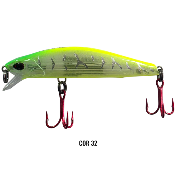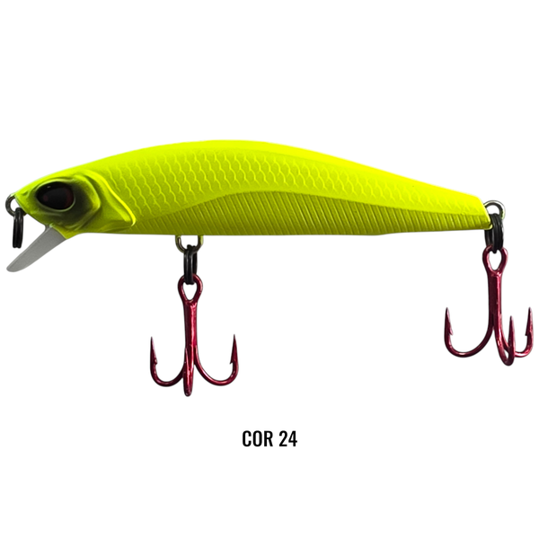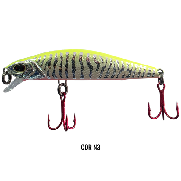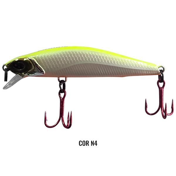 A Raptor Minnow se destaca com toques curtos de ponta de vara e intervalos no recolhimento, imitando de forma convincente um peixe em busca de presas ou em fuga. Essa técnica de trabalho torna a isca irresistível para predadores que são atraídos por esse movimento natural e instintivo. A Raptor Minnow é uma isca de meia água floating, de fácil arremesso. Possui sistema XLC de arremesso e garatéias VMC 3X. Ideal para pesca de Tucunarés, Traíras, Dourados, Black Bass e entre outros predadores.
