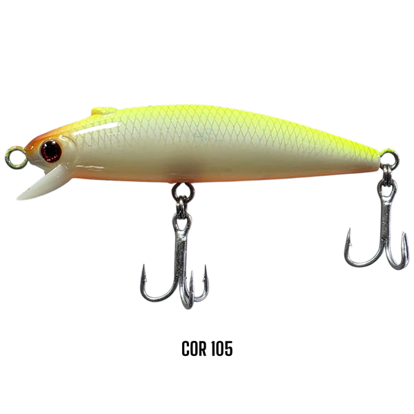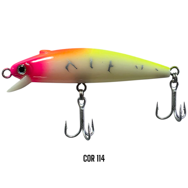 Um pequeno "V" saliente na parte superior (dorso). Com toques de ponta de vara, a Borá Plus produzirá um ruído exclusivo "tchá" agudo, o melhor ruído para atrair os robalos pevas, flechas e outros predadores. Trabalho Tradicional: Arremesse a Borá Plus no local desejado, recolha dando toques com a ponta de vara produzindo movimentos erráticos. Trabalho Diferenciado: Trabalho extra diferenciado: dê um toque com a ponta de vara, a Borá Plus (que tem o balanceamento diferenciado e exclusivo mais o V saliente) produzirá um ruído "tchá tchá" agudo, ruído que eu obtenho os melhores resultado há muitos anos.