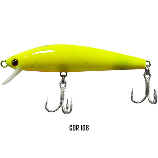 Isca artificial de meia água com balanceamento exclusivo e chocalho forte (Ratlin) garateia reforçada 4 vezes com flutuação rápida. Excelente para utilizar na técnica conhecida por catimbinha que faz o predador atacar também por irritabilidade. Trabalho Tradicional: Arremesse a Queen no ponto desejado, em seguida o recolhimento contínuo, a Queen terá o movimento uniforme, mas lembre-se de um detalhe muito importante, a presa ferida é a presa mais fácil para o predador, por isso durante o recolhimento dê um ou mais toques com a ponta da vara, a Queen fará o movimento de um peixe ferido, momento mais oportuno para o ataque do predador. Trabalho Diferenciado: Arremesse a Queen no ponto desejado, em seguida dê um toque vigoroso com a ponta da vara, a Queen afundará e voltará rapidamente para superfície, repita este trabalho várias vezes, pois desta forma mesmo o predador não estando com fome atacará a Queen por irritabilidade. O ataque será fulminante.