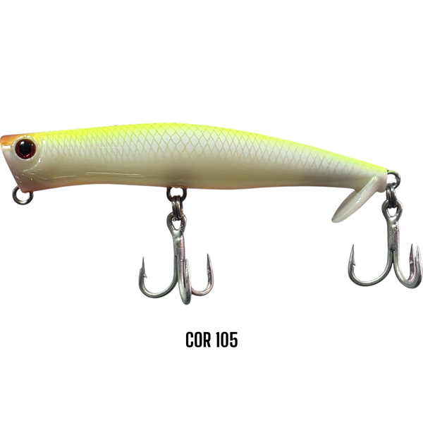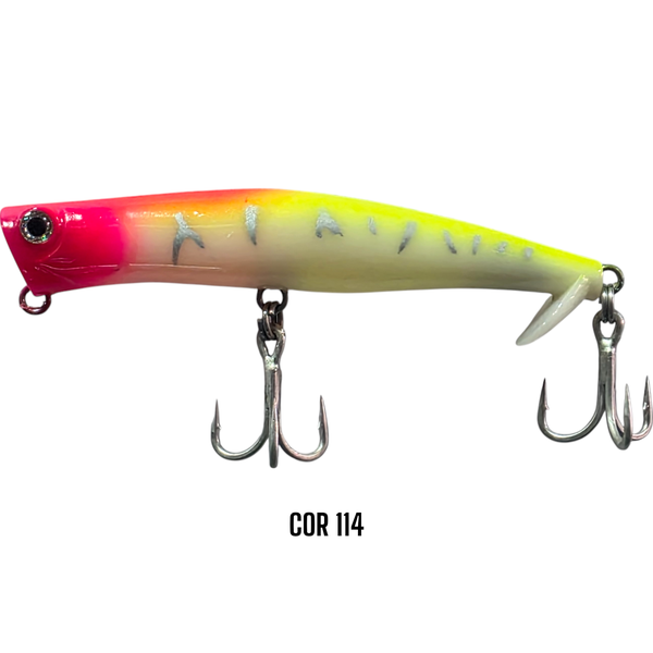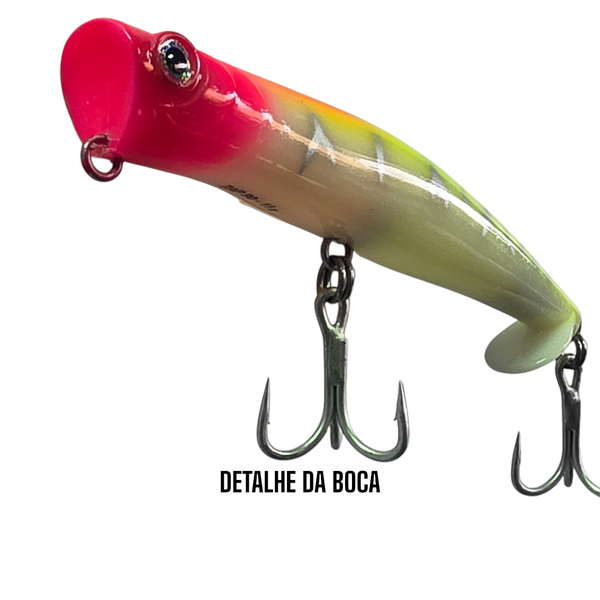 Se você deseja extrair o máximo de trabalho de um popper, a ZAP é a isca indicada. Desenvolvida pelo mestre da pesca esportiva com iscas artificiais Nelson Nakamura, a ZAP conta com uma pequena barbela na parte de traz que proporciona maior estabilidade no trabalho da isca, evitando que o popper "capote" mesmo em puxadas mais fortes. Além desse grande diferencial, o pitão da ZAP está posicionado de forma diferente em relação a poppers tradicionais, possibilitando um trabalho conjugado de popper e zara que pode ser extraído dessa isca. Dê pequenos ou longos toques de ponta de vara pausados e trabalhe a ZAP como popper ou dê pequenos toques de ponta de vara contíunuos e trabalhe a ZAP como zara espirrando água. Eficiente e fácil de ser trabalhada, a Zap é uma isca sensacional que não pode faltar na caixa de pescadores que apreciam grandes exploções na superfície.