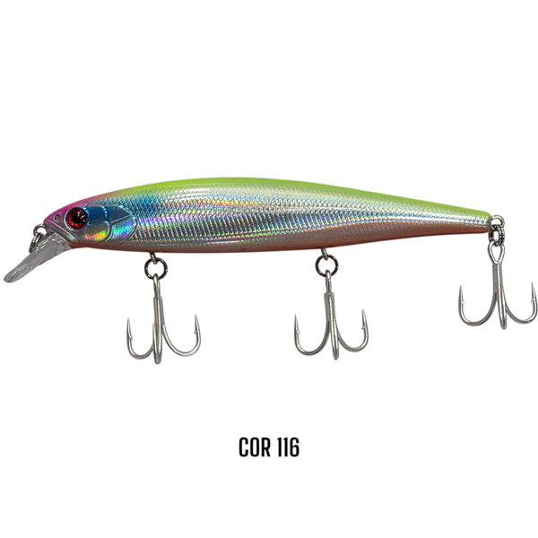 A isca THANOS 115 foi desenvolvida especialmente para os peixes brasileiros, em especial o Tucunaré. Possui ação de meia água(Flutuante) com um trabalho especial que imita uma presa ferida. Sua forma e peso fazem com que os arremessos sejam mais longos. Seu grande diferencial é o sistema de oscilação de peso em Tungstênio, proporcionando arremessos mais precisos com um forte chocalho, que deixa o predador muito mais irritado. Indicada para uma grande variedade de peixes predadores como Tucunaré, Robalos, Traíras, Black Bass ente outros.