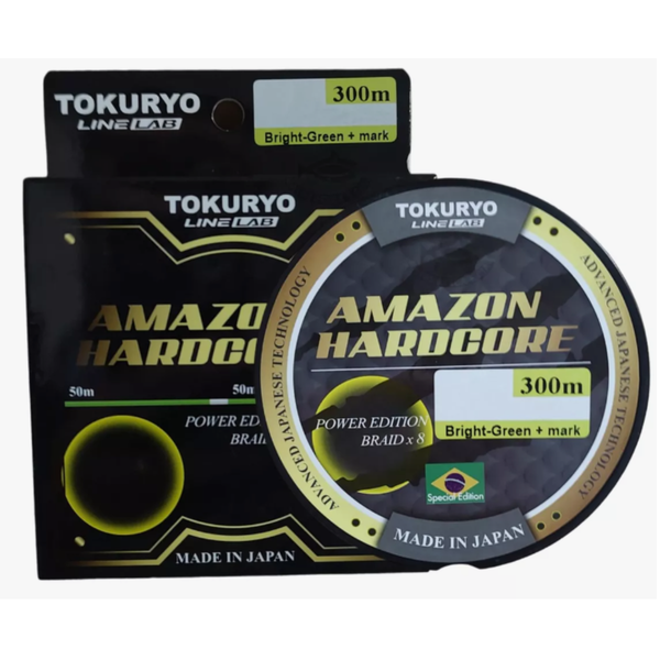 Linha multifilamento Tokuryo AMAZON HARDCORE é especialmente projetada para pescarias leves e pesadas, sendo também uma excelente opção para pescaria de tucunarés e robalos. Tem uma trança de 8 fios de alta qualidade para uma resistência poderosa. A linha Amazon HARDCORE é fabricada no Japão com materiais de alta qualidade, que proporciona tranças super resistentes a abrasão. Por ser feita com 8 fios, sua memória se torna zero, proporcionando para o pescador uma excelente sensibilidade e grande eficiência nas fisgadas.