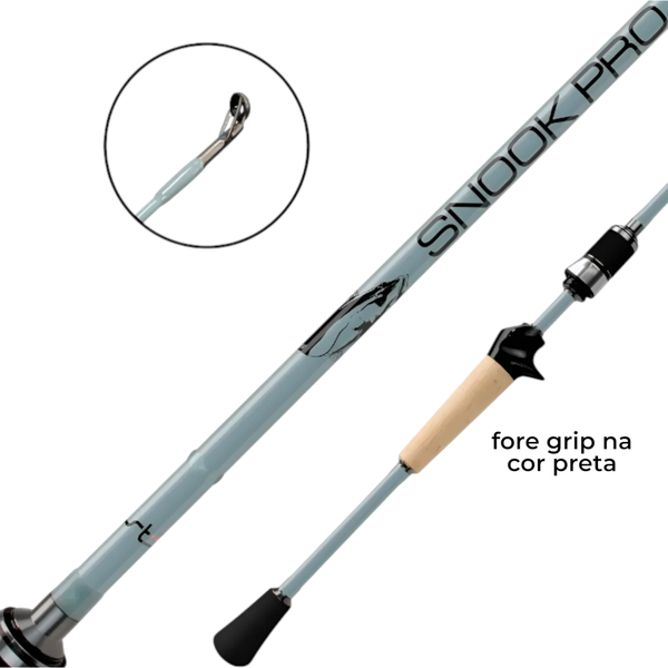 A Snook Pro e composta por blank em carbono IM10, em conjunto com Reel Seat Skeleton Black piano acompanhado de cortiça e but cap e, EVA com cabo bi partido. Seus passadores e ponteiras são anti loop Sea Guide com anel em zircônia, que oferece menos atrito e muito mais resistência para seu equipamento. Para pescadores exigentes tanto em qualidade quanto no visual. É voltada para arremessos mais leves ou médios, com foco em iscas leves e em situações onde se deseja sensibilidade.
